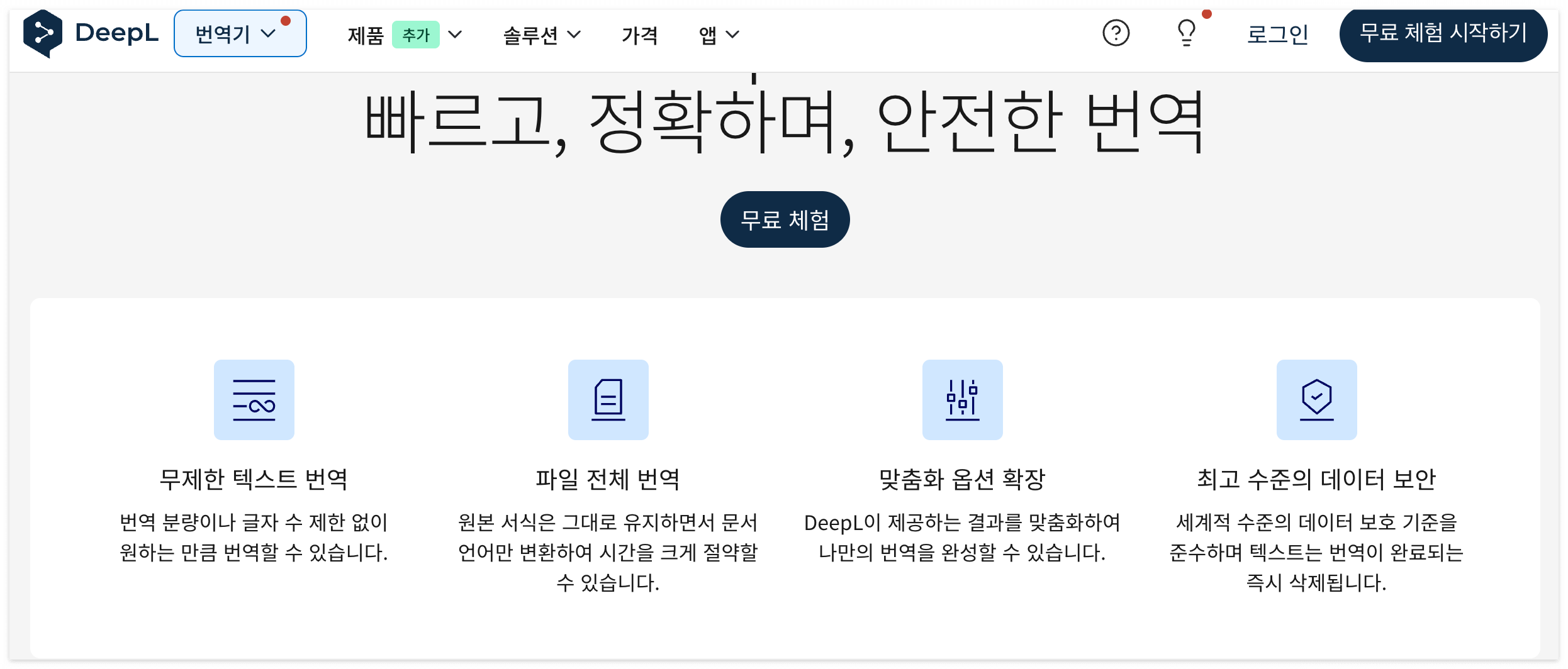 - 무료 여부: 기본 번역 무료, 문서 번역 등은 유료