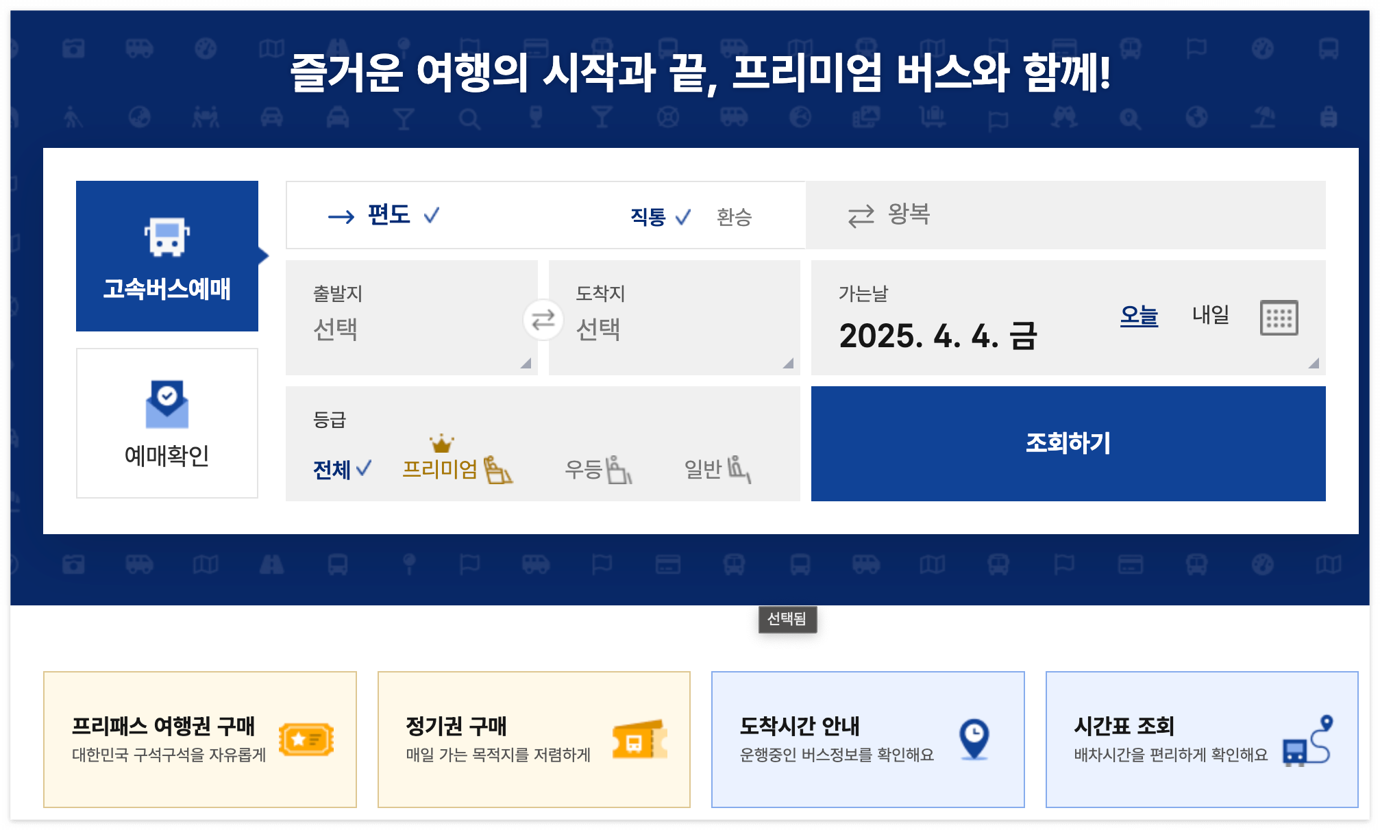- 출발지: ‘서울경부’ 또는 ‘센트럴시티’ 선택