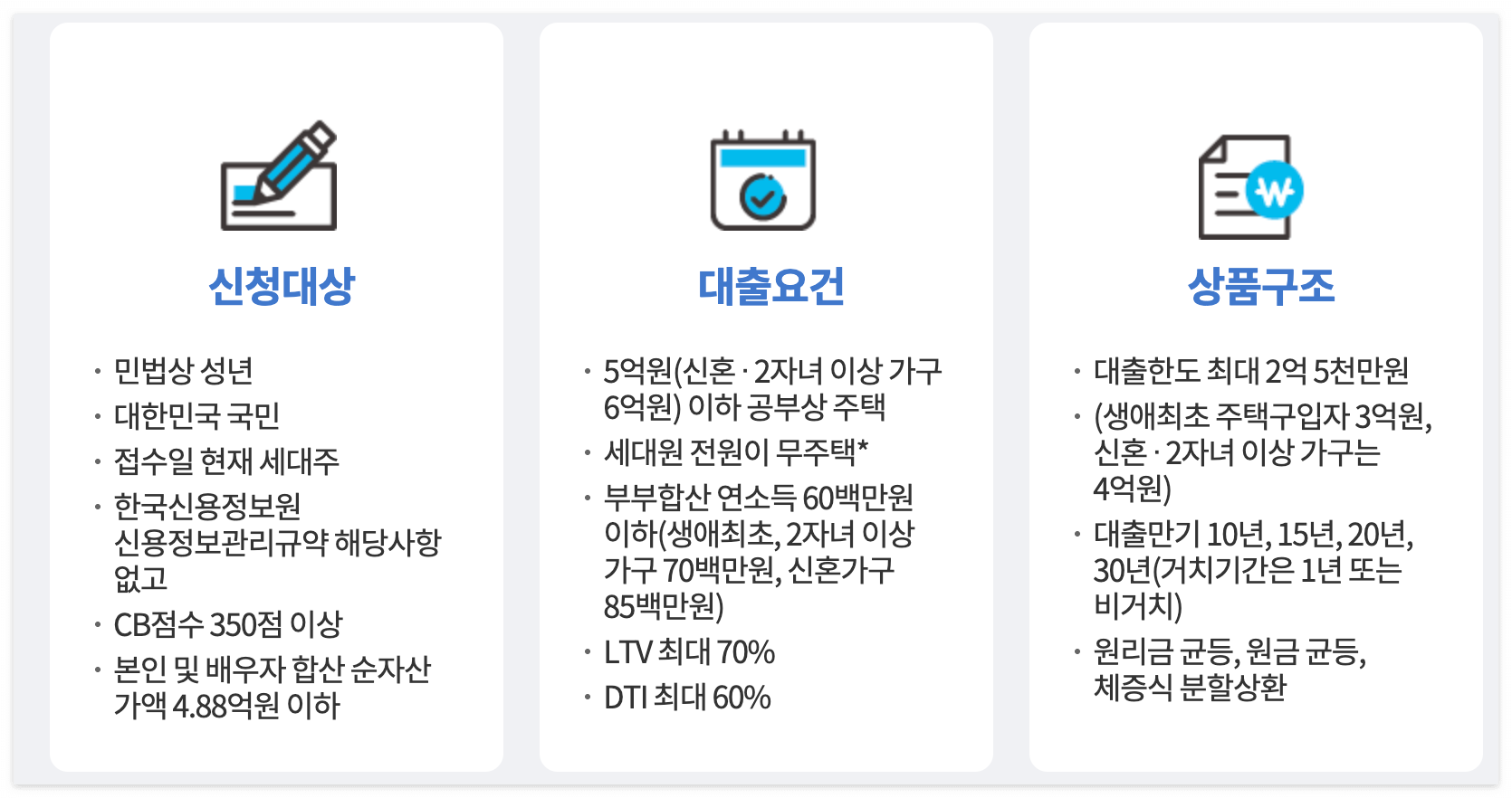 | 대출 대상 | 본인 및 배우자 모두 생애 첫 주택 구입자 |